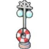 A streetlight that invokes harbor vibes. The life buoy stands out as the main highlight.
