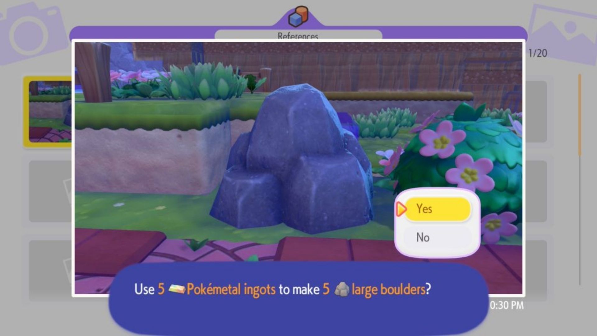 After taking the photo, return to the Pokémon Center and interact with the 3D Printer. The rock will appear in the list of captured objects. Players can then exchange the required amount of Pokémetal to print a Large Boulder Rock.